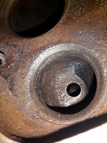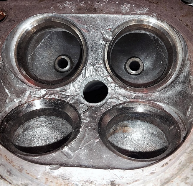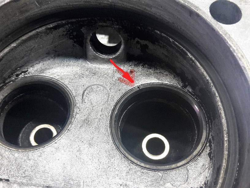 Iz spodnjih slik je razvidno kako pride do poškodb sedežev ventilov. Desno poškodba zaradi tujka v cilindru. Levo počen sedež.