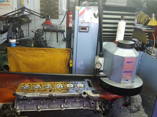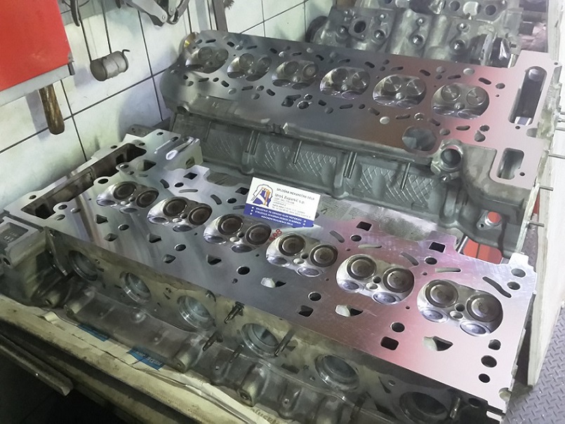Glavo motorja najprej razstavimo(odstranimo ventile in tesnila ventilov), nato se glavo temeljito očisti maščob in saj kar storimo z pomočjo ultrazvočne kadi. Ko je glava očiščena se preveri zračnost vodil ventilov in stanje ventilov. Po potrebi se vodila ventilov in ventile zamenja, nato pa se prične z brušenjem sedežev ventilov in ventilov. Glavo se nato površinsko poravna, temeljito spiha s komprimiranim zrakom in pripravi za montažo ventilov in novih tesnil ventilov (teflonov).